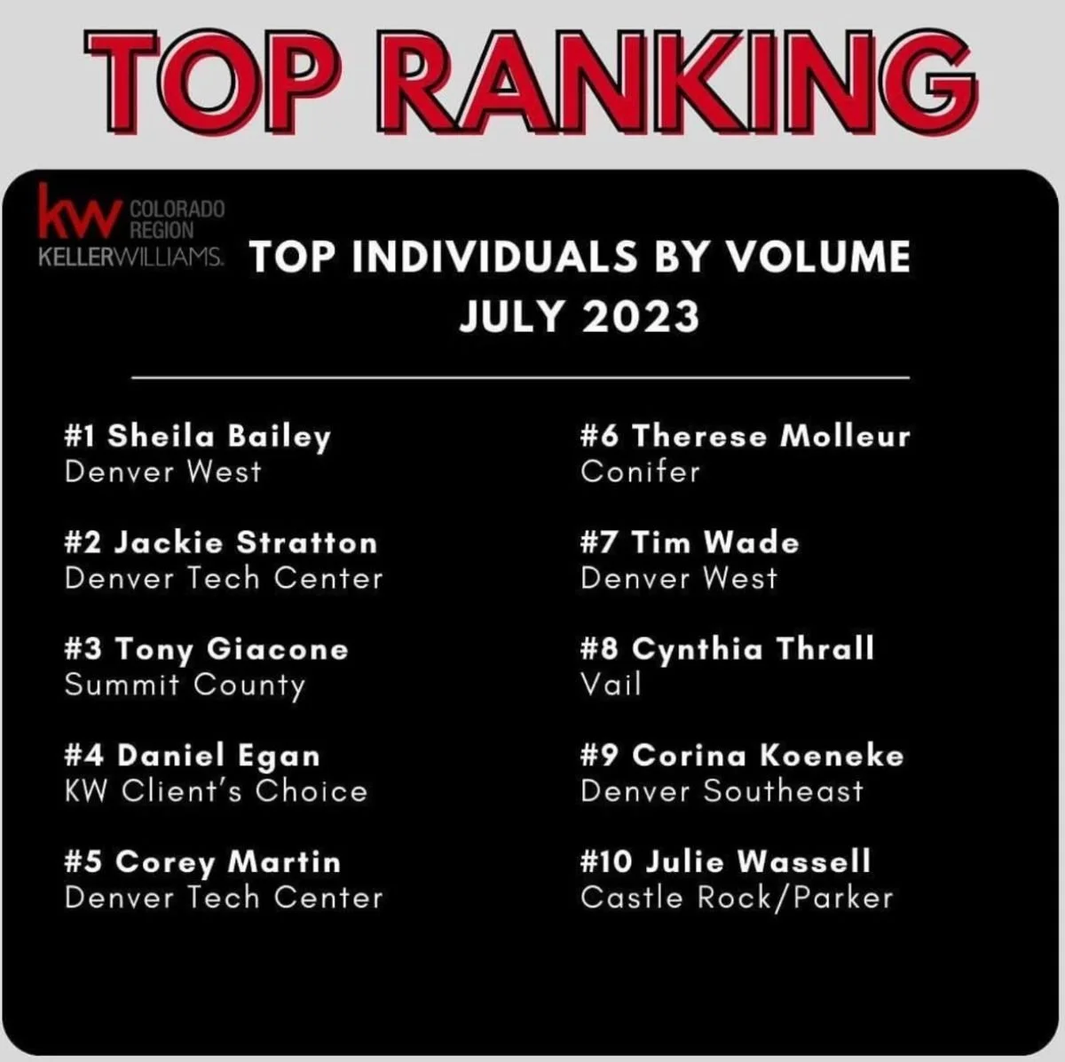 Keller Williams July 2023 Top Ranking